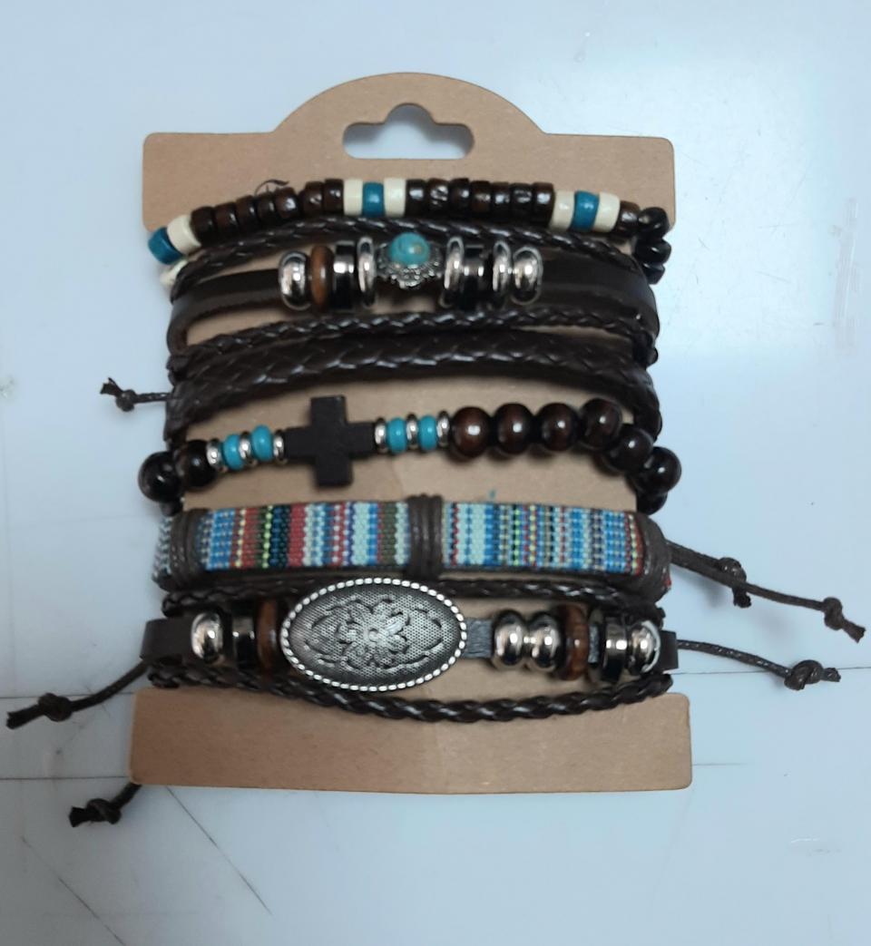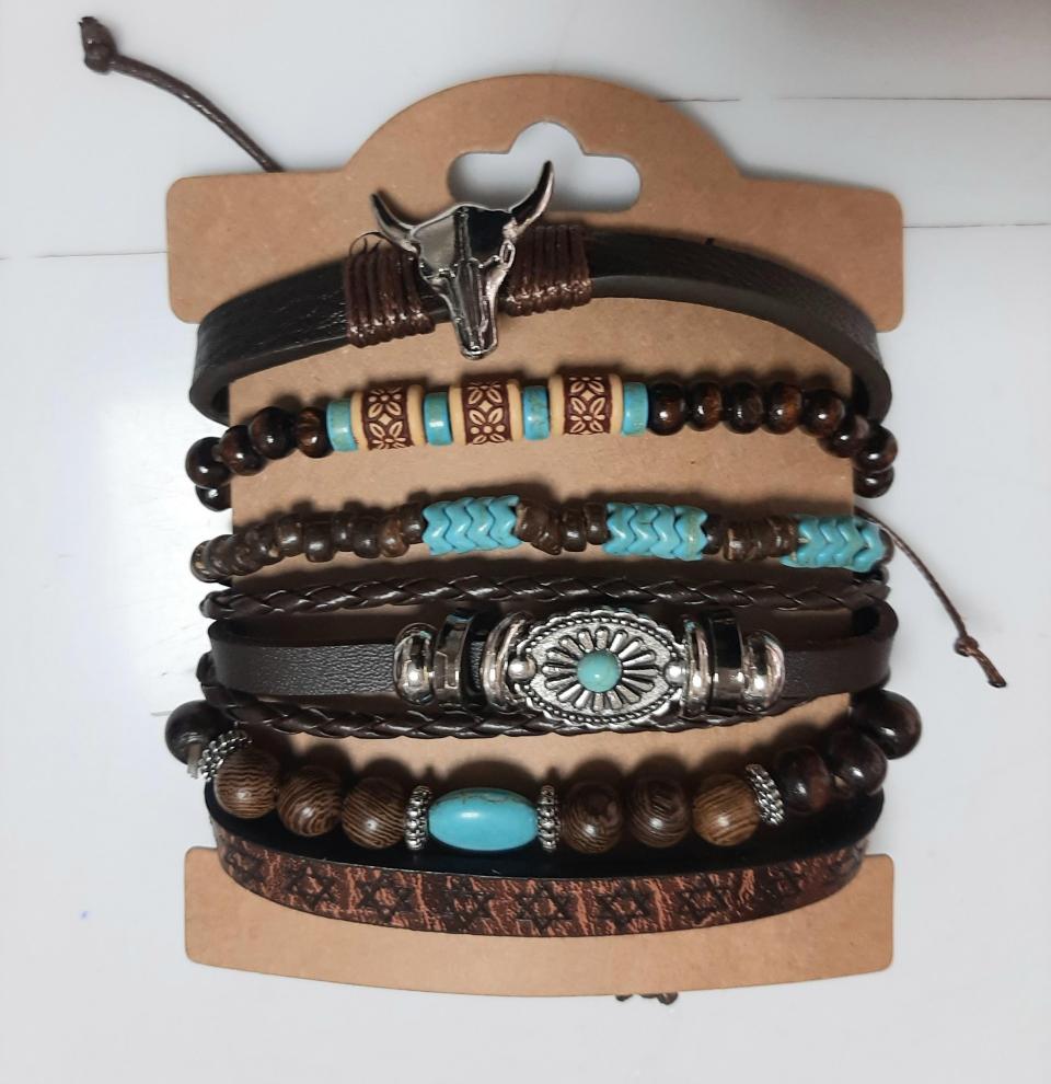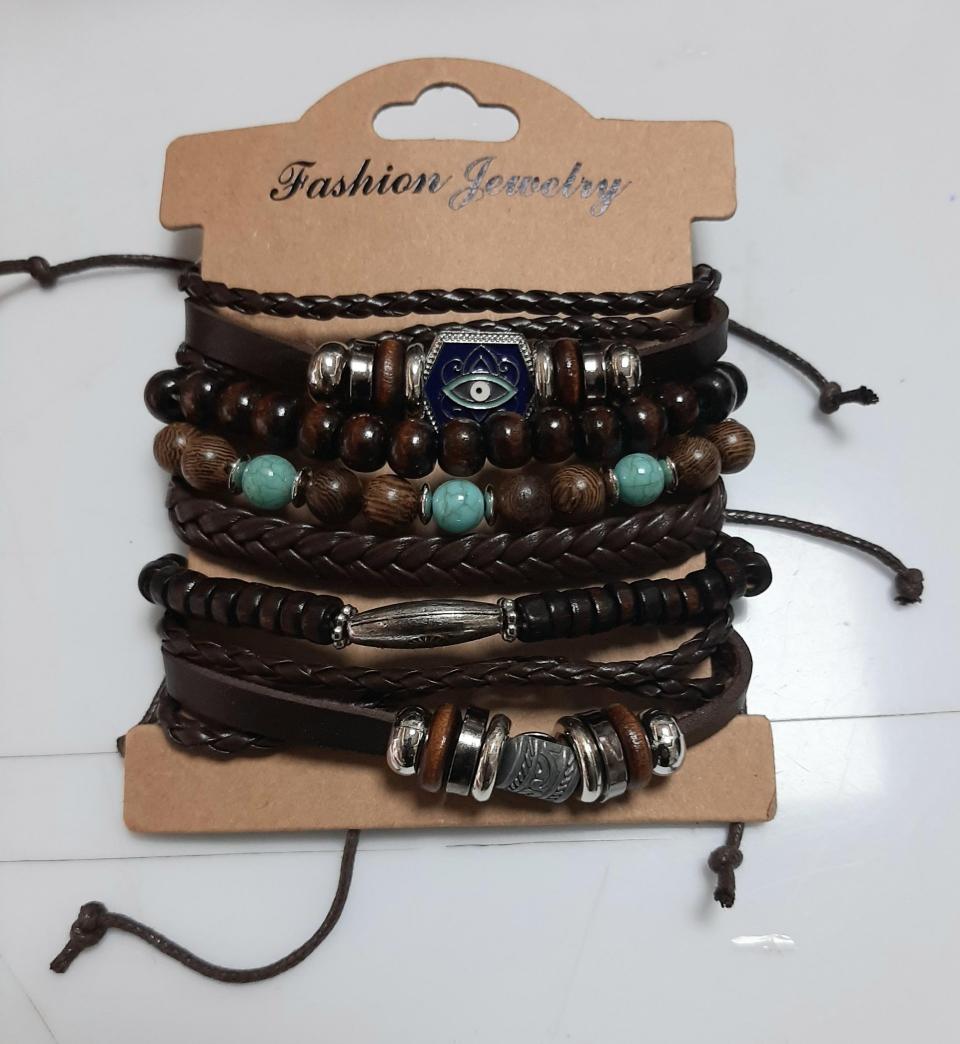 6 adet değişik şekillerde deribazlı ip, deri, boncuk ve metal süslerle elde yapılmş bileklikler, verilen fiyat 6 adet içindir,4 değişik paket vardır,hangisi olduğunu belirtin.